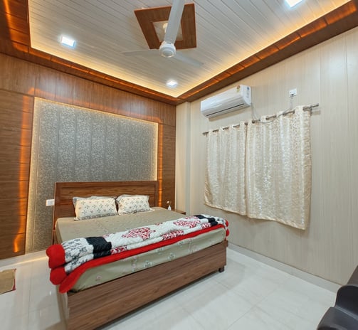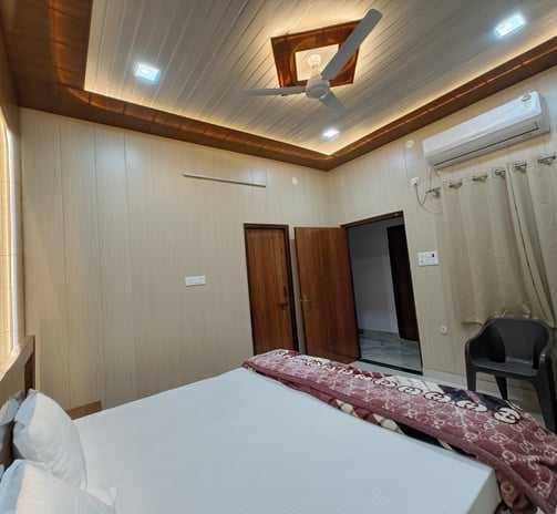 Experience luxury and comfort in our deluxe suite, perfect for families and groups visiting Ayodhya Dham for a memorable stay.